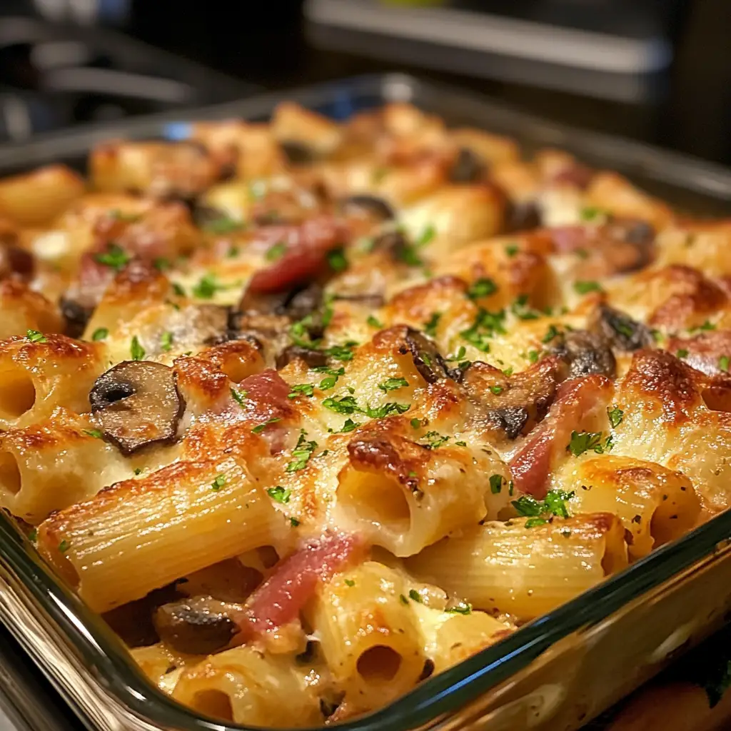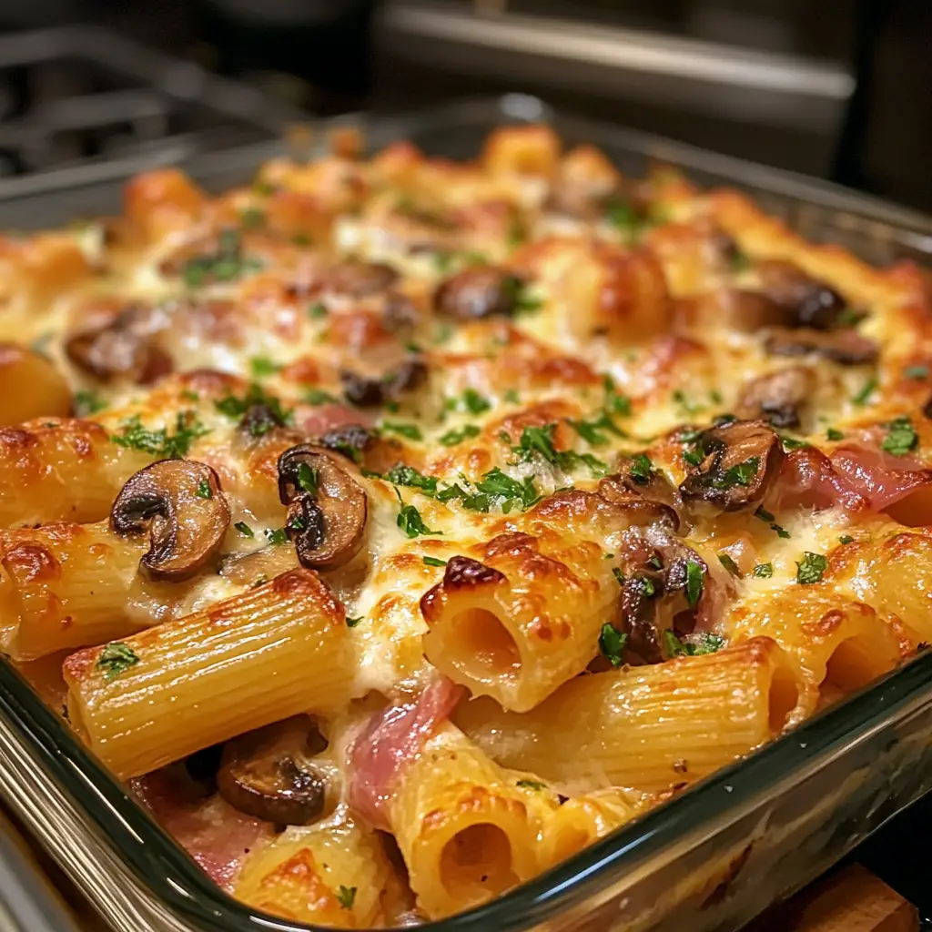 Keywords: Baked Rigatoni, Mushrooms, Prosciutto, Italian Pasta, Comfort Food