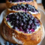 A delightful blend of tangy sourdough, fresh blueberries, and creamy lemon-infused cream cheese in a beautifully baked loaf.