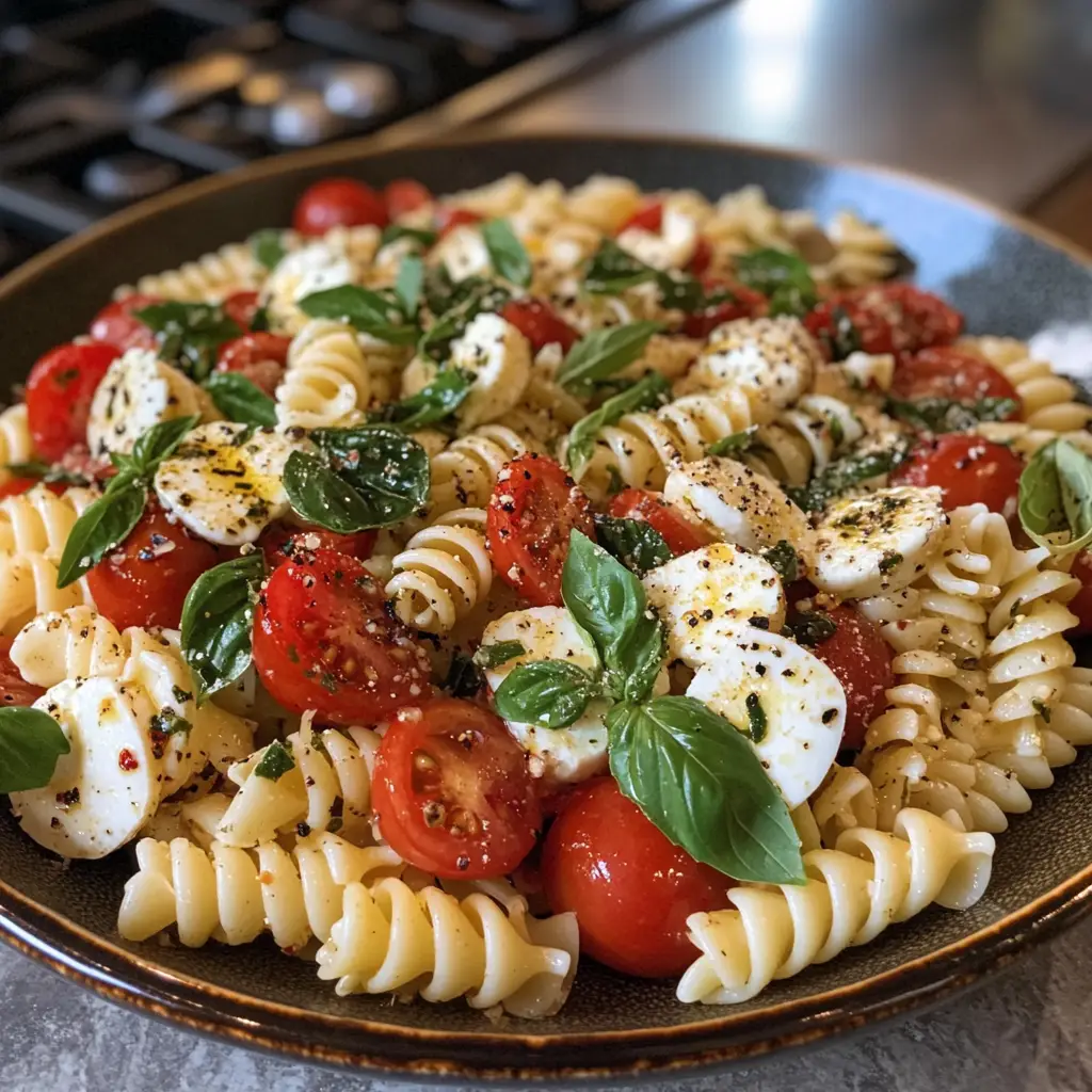 A refreshing and vibrant pasta salad that combines the classic flavors of Caprese salad with pasta for a delightful twist.