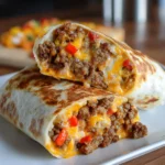 Cheesy Beefy Roll-Ups are a delicious and satisfying dish that combines seasoned ground beef, melted cheese, and soft tortillas for a flavor explosion in every bite.