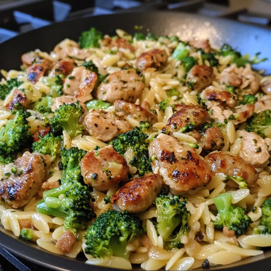 A delicious and easy-to-make dish featuring chicken sausage, broccoli, and orzo pasta, perfect for a weeknight dinner.