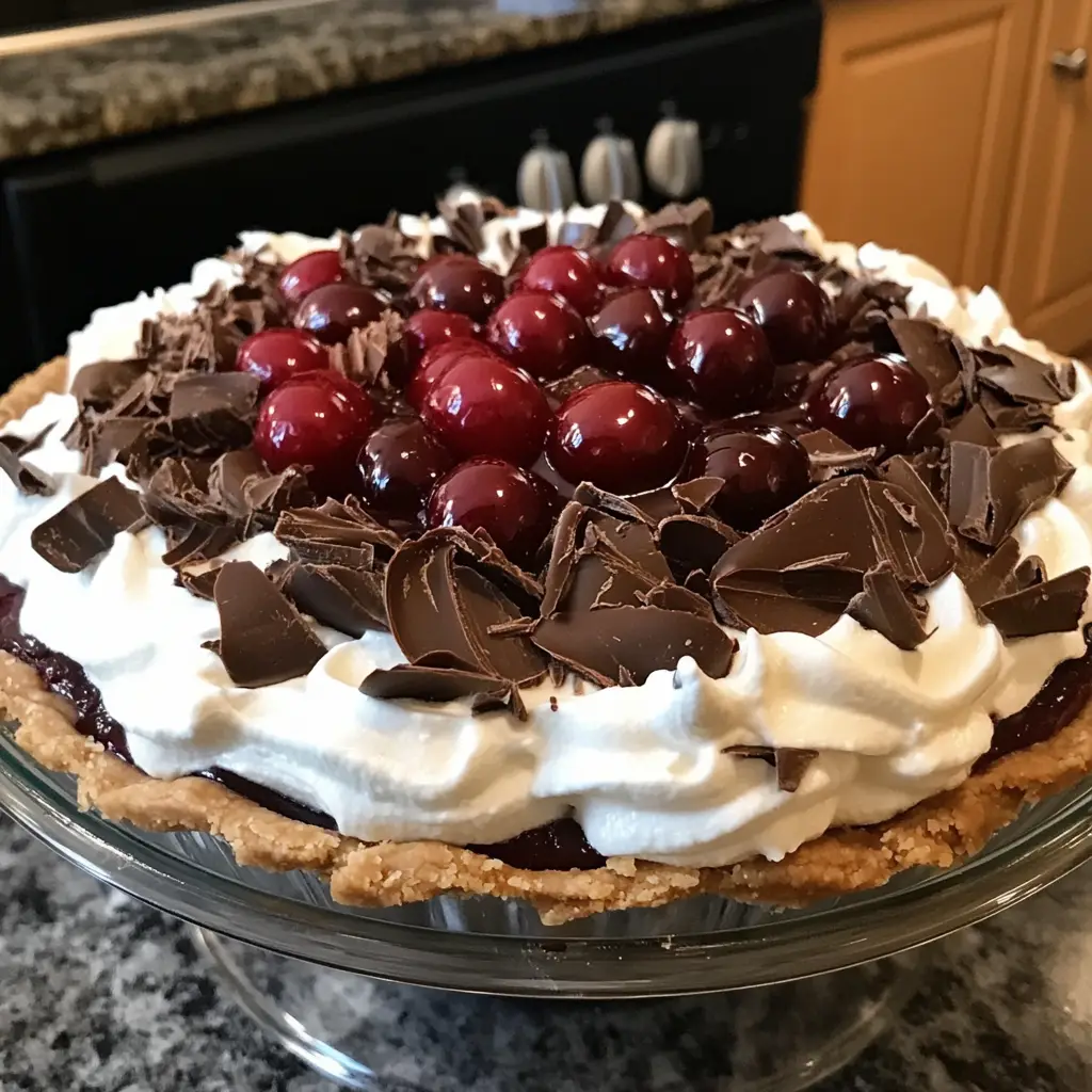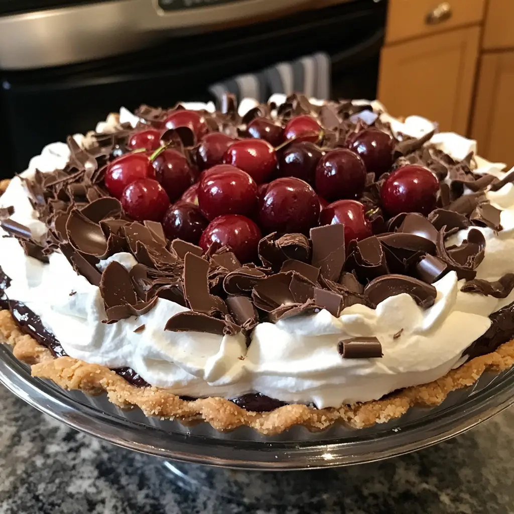 A rich and creamy dessert combining chocolate and cherry flavors in a delightful pie.