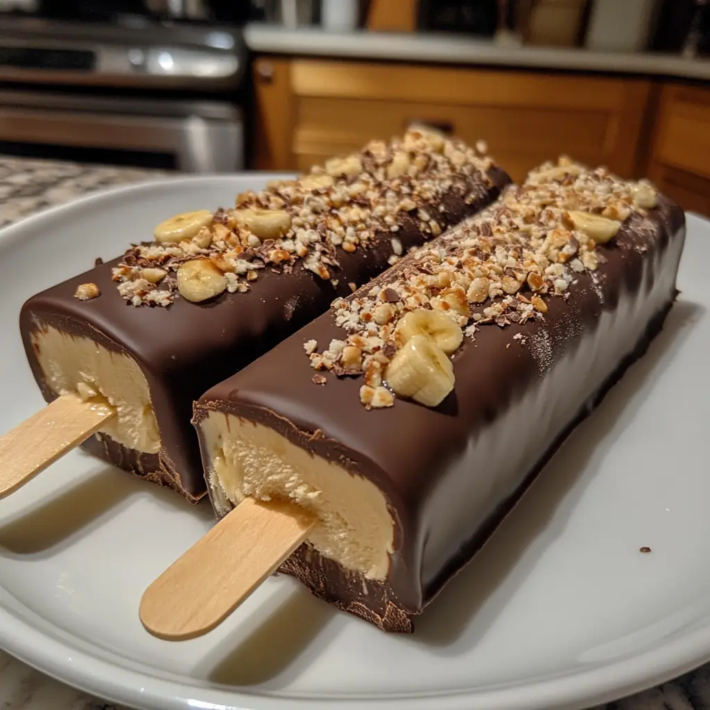 Keywords: Chocolate Covered Banana Ice Cream Bars, Banana Ice Cream, Chocolate Dessert