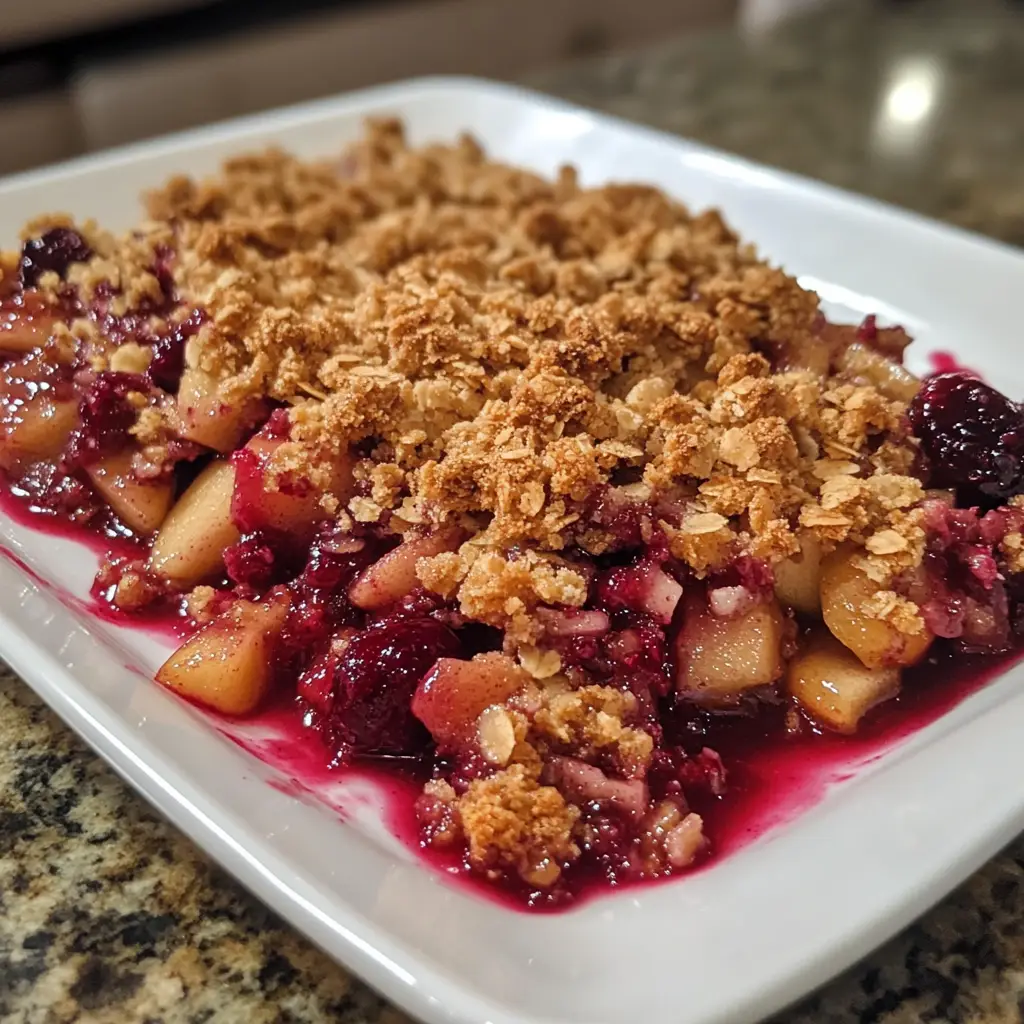 Cranberry Apple Crisp is a delightful fall dessert that combines tart cranberries and sweet apples, topped with a crunchy oat and brown sugar crumble.