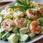Imagine a sunny afternoon, the warm breeze carrying the tantalizing scents of fresh herbs and zesty lemon. You sit at a charming picnic table adorned with inviting dishes, the laughter of friends ringing joyfully in the air. Suddenly, your gaze lands on a bowl of creamy cucumber shrimp salad—it glistens with vibrant green cucumbers, succulent pink shrimp, and a velvety dressing that beckons you closer. A single spoonful transports you to a world where flavor, texture, and pure culinary bliss intertwine, making every bite an irresistible delight.