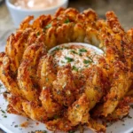 - Cheesy Dipping Sauce: A warm, melty goodness drizzled over the crispy onion elevates the dish to new heights.