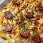Embrace the cozy warmth of home-cooked comfort food with a dish that welcomes all the senses. Imagine stepping into your kitchen and being enveloped by the rich, buttery aroma of sautéing onions mingling with the smoky notes of kielbasa. Picture a bubbling casserole, golden and enticing, with each layer revealing creamy pierogi, hearty sausage, and the luscious tang of sour cream. This is not just a meal; this is an experience—the kind that draws friends and family around the table, where laughter flows as freely as the savory scents wafting through the air.