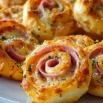 Delicious and flaky pinwheels filled with savory ham and creamy cheddar cheese, perfect for Easter gatherings.
