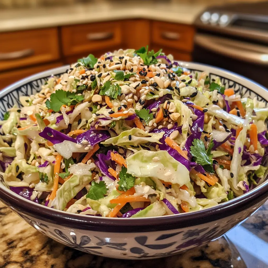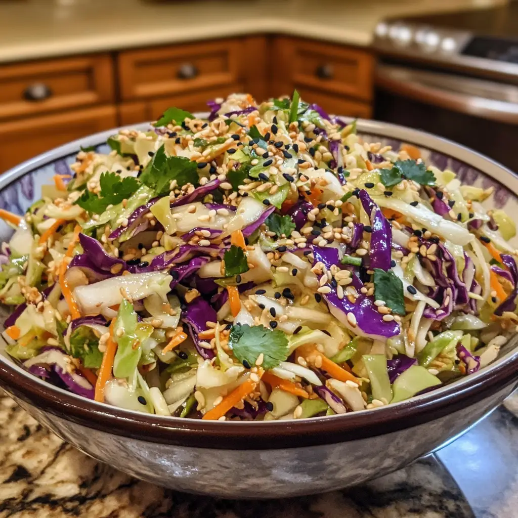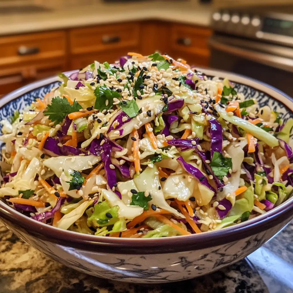 A refreshing and crunchy Asian cabbage slaw tossed in a delicious sesame dressing, perfect as a side dish or a light meal.