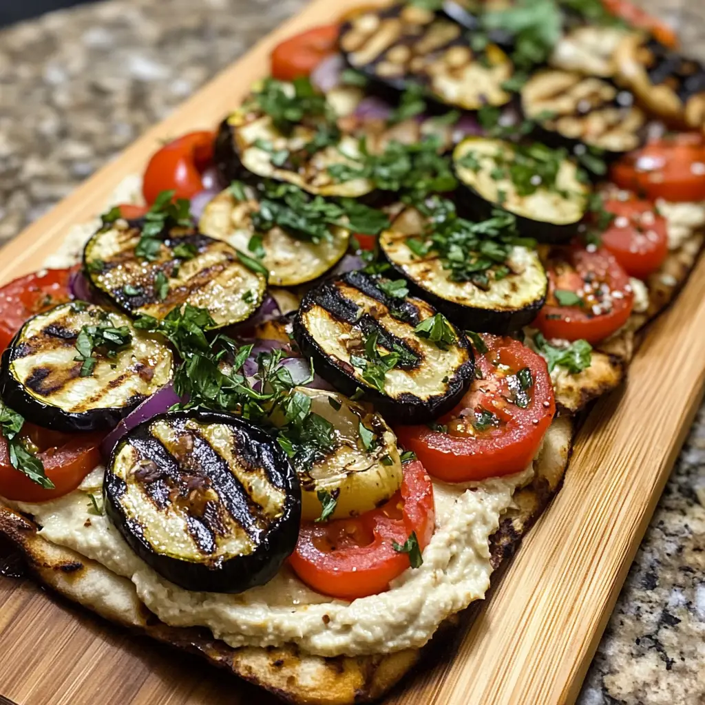 Grilled Vegetable and Hummus Flatbread: A Tasty Delight!
