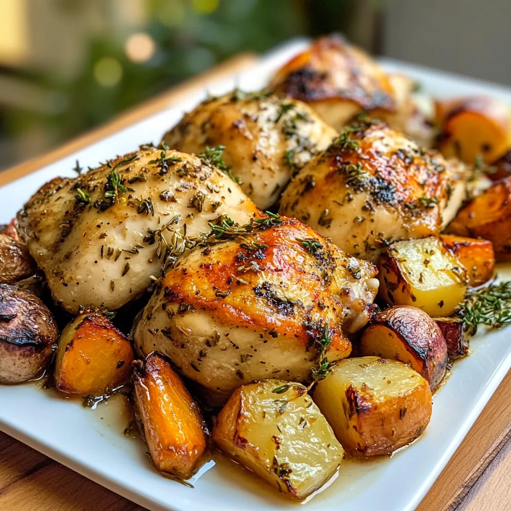 A delicious and hearty dish featuring tender herb-roasted chicken paired with flavorful root vegetables, perfect for a comforting dinner.