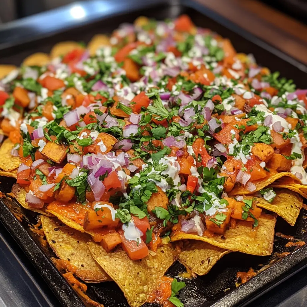 Loaded Sweet Potato Nachos are a delicious and healthy twist on traditional nachos, featuring crispy sweet potato slices topped with a variety of flavorful ingredients.