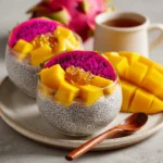 A refreshing and vibrant chia pudding made with mango and dragon fruit, perfect for a healthy breakfast or snack.