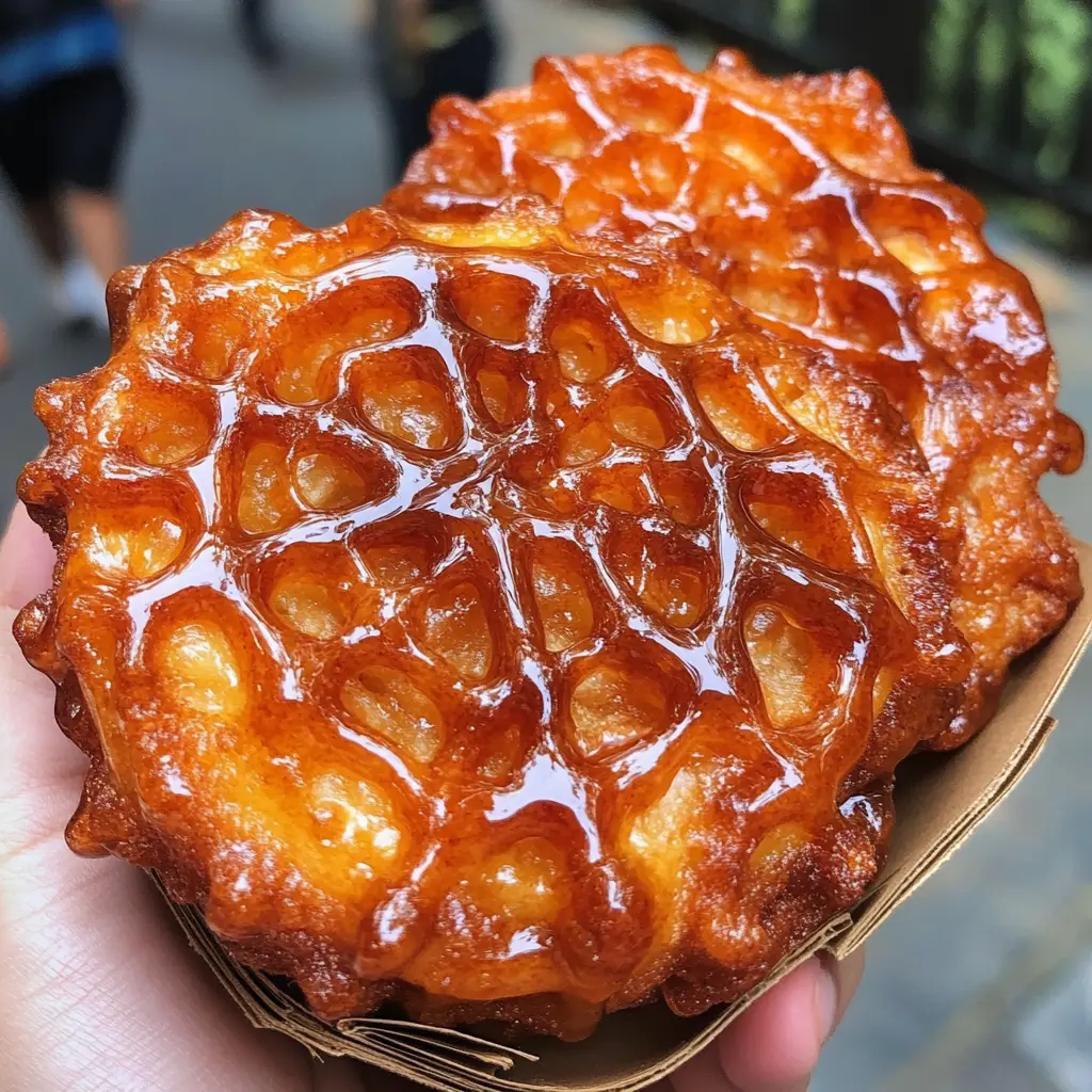 Once the oil is hot, it’s time to have some fun! Pour the batter into the pan in a circular motion, creating a spider web pattern. Start from the center and work your way outwards. The unique design not only looks impressive but also adds a delightful texture. Don’t worry if it’s not perfect; the charm is in the homemade touch!