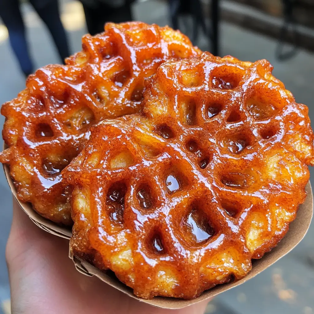 Delicious fritters with a unique spider web design, flavored with maple and cinnamon.