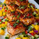 Imagine this: tender, succulent bites of salmon glazed with a sweet yet spicy maple Sriracha sauce, bubbling and caramelizing in the oven, filling your home with an irresistible aroma that beckons your taste buds. As you take the first bite, the salmon melts in your mouth, the hint of heat from the Sriracha dancing harmoniously with the rich sweetness of maple syrup. You close your eyes for a second, savor the moment, and just like that, the world outside fades away. Coupled with a vibrant mango salsa that bursts with freshness, tangy lime, and a crunch that excites every bite, this dish transforms a simple meal into a culinary adventure.