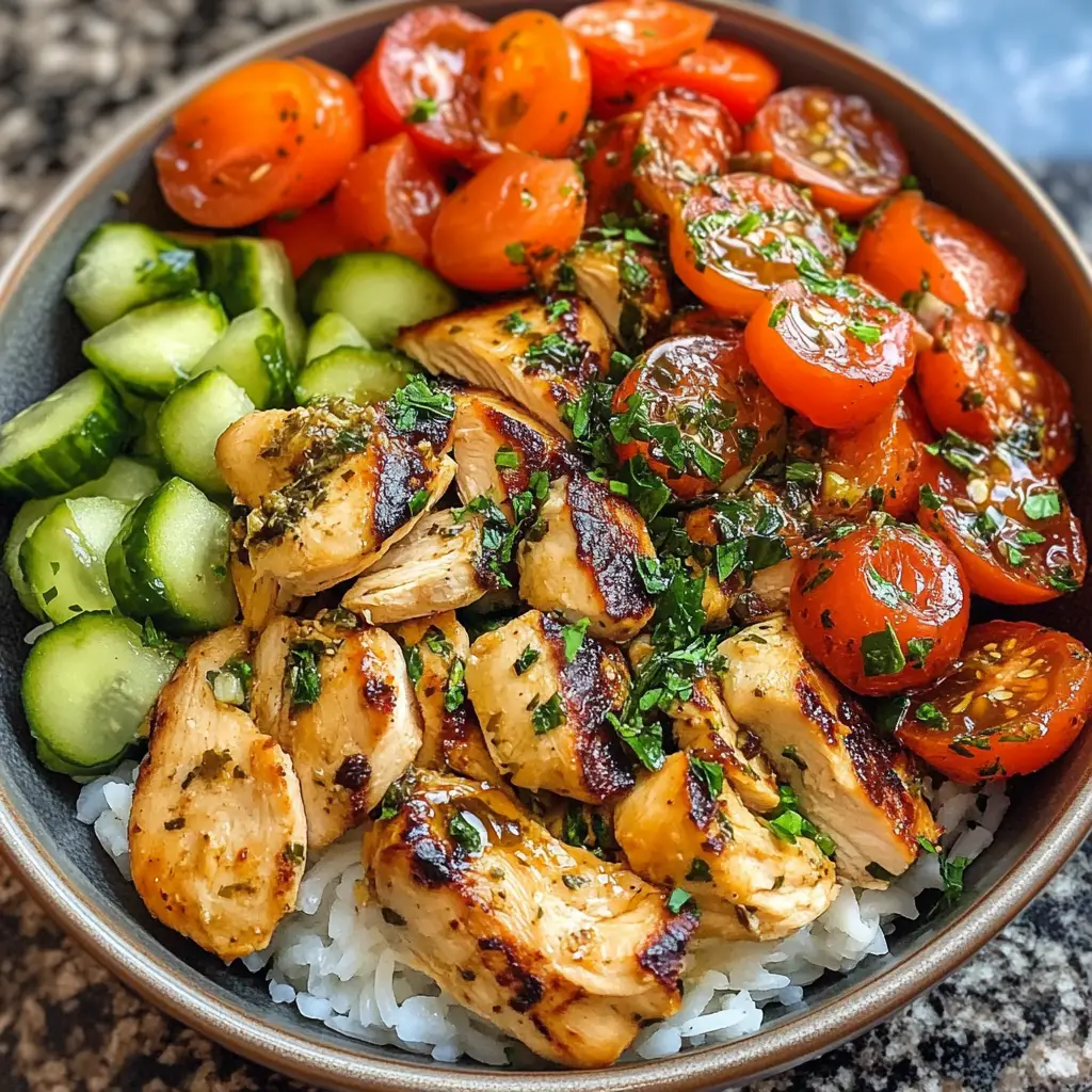 PrintMediterranean Chicken Rice Bowls: A Flavorful Delight!