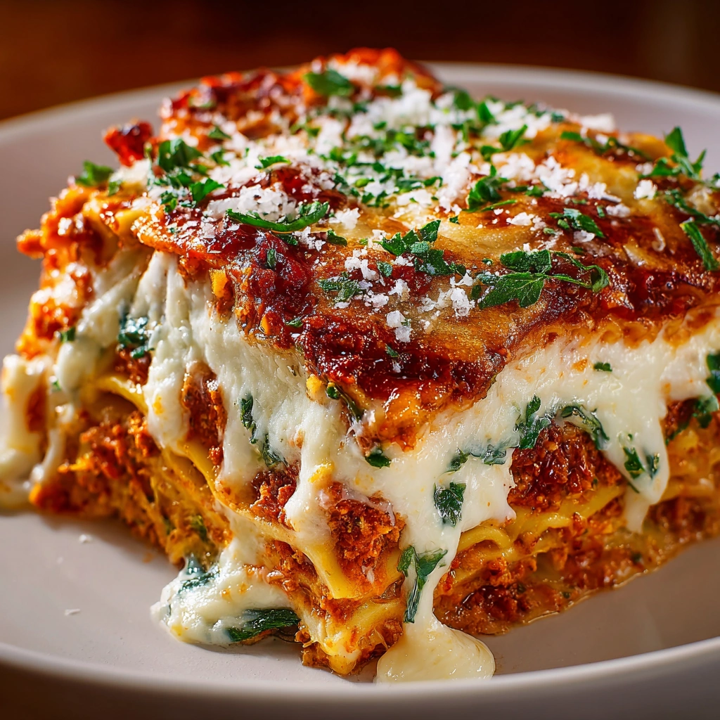 A delicious and festive no-bake lasagna perfect for Christmas gatherings, combining layers of pasta, cheese, and seasonal flavors.