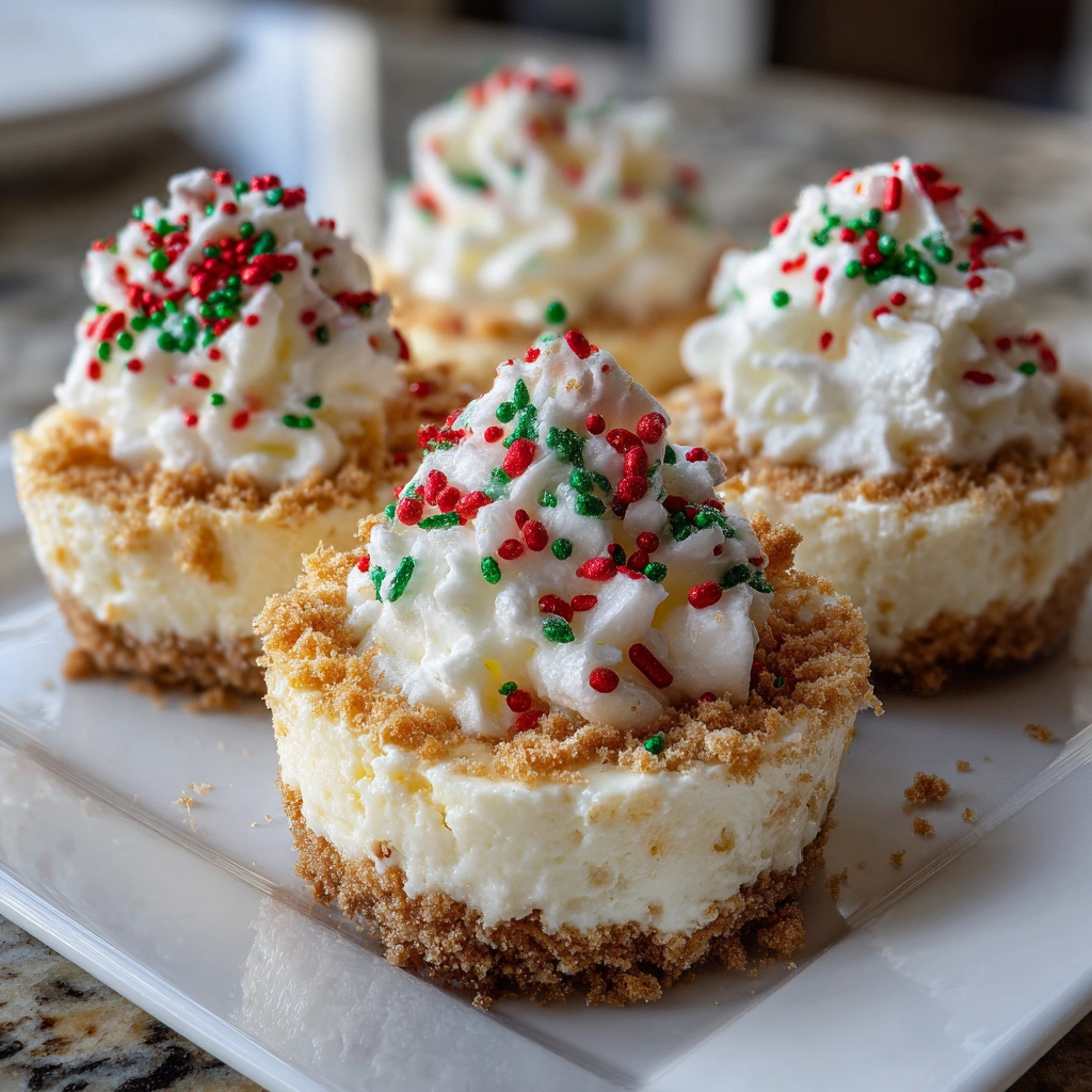 Delicious and festive no-bake mini cheesecakes perfect for Christmas celebrations.