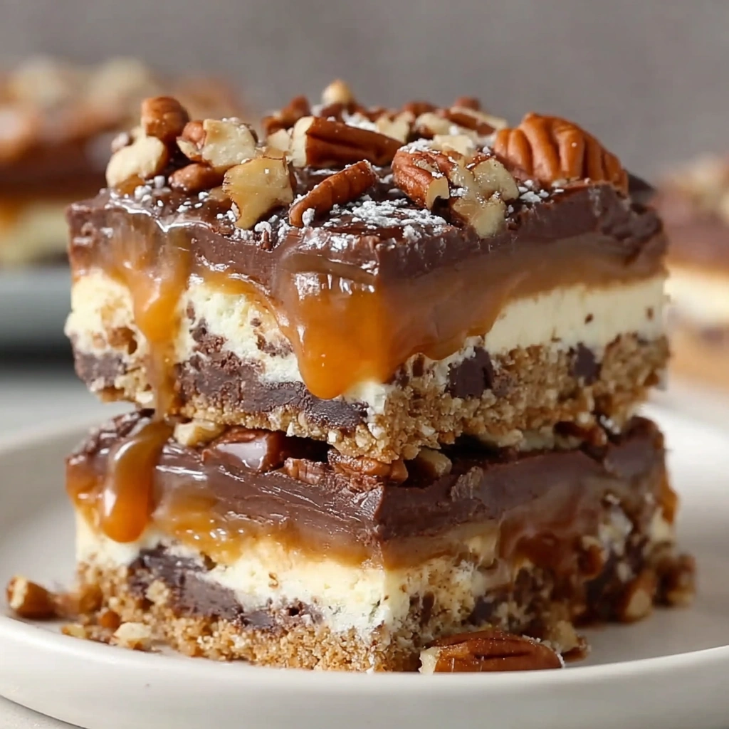 Finally, pop the dish into the refrigerator for at least 2 hours. This allows the bars to set properly. Once they’re firm, cut them into squares and serve chilled. Trust me, these No Bake Turtle Dream Bars will be the star of any gathering!