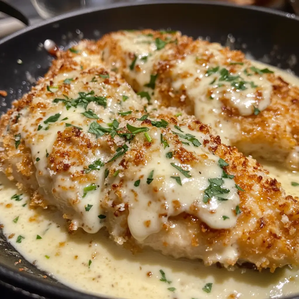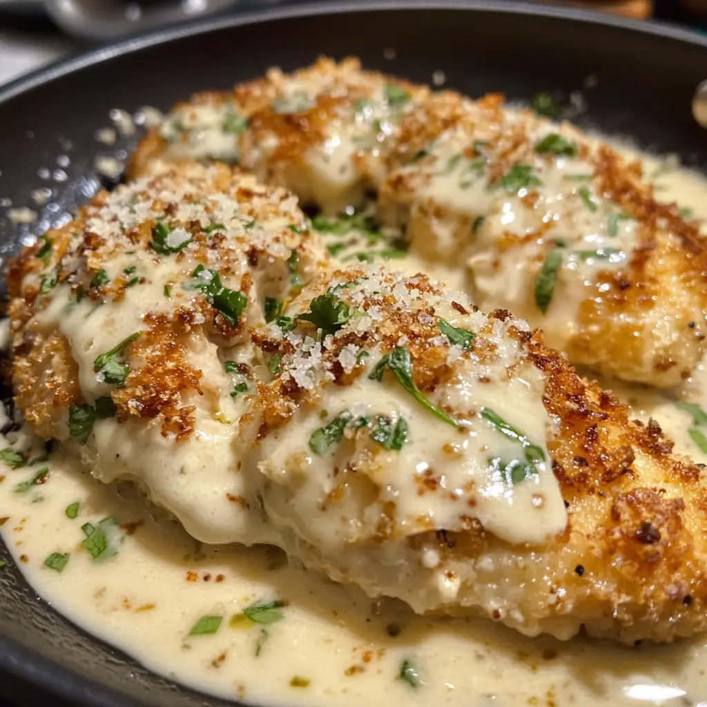 Keywords: Parmesan Crusted Chicken, Creamy Garlic Sauce, Chicken Recipe, Italian Cuisine