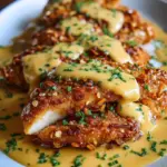 The creamy mustard cheddar sauce drizzled generously on top takes this dish to another level of indulgence. Imagine the sharp bite of Dijon mustard perfectly balanced with the rich creaminess of heavy cream and the nutty richness of cheddar cheese. This sauce lingers on your palate, making it impossible to resist going back for just one more piece. It’s the perfect companion to the excellent crunch of the chicken, creating a delightful contrast that leaves you looking forward to every mouthful. Whether you’re hosting a weekend gathering or treating yourself to a lovely meal after a long day, this dish promises pure, unadulterated satisfaction.