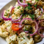 As the vibrant colors blend together—creamy whites of the cauliflower contrasting with the dark green of olives and the vivid red of onions—this Sicilian Cauliflower Salad becomes not only a feast for the mouth but also for the eyes. Imagine the first forkful, where the crispness of the vegetables meets the rich depth of the olive oil dressing, brightened by a splash of lemon. It’s refreshing, hearty yet light, making it an ideal dish for every occasion. Whether you serve it at a summer barbecue, a cozy family gathering, or as a simple weeknight dinner side, this salad radiates warmth and invites everyone to take a seat, share stories, and savor the good life.