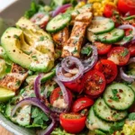 - Drizzle the dressing over the assembled salad and toss gently to combine, ensuring every ingredient receives a touch of that zesty goodness.