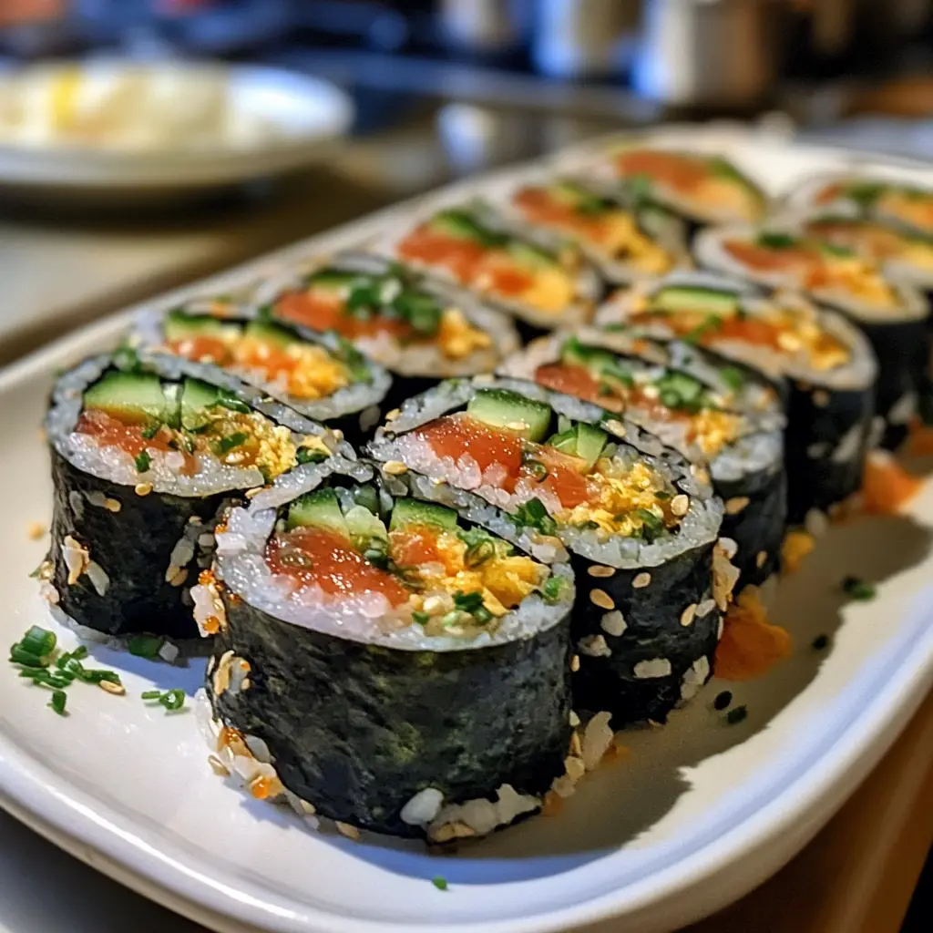 Delicious and fresh sushi rolls filled with vibrant spring vegetables, perfect for a light meal or appetizer.