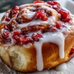 Delightful soft and fluffy cinnamon rolls infused with juicy strawberries, topped with a creamy glaze.