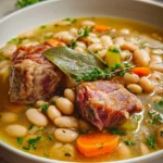 A warm and hearty bowl of White Bean and Ham Hock Soup, perfect for cozy nights in, filled with rich flavors and comforting textures.